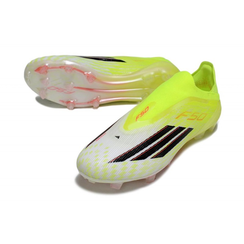Illuminez le terrain avec les chaussures adidas F50 sans lacets créées spécifiquement pour les athlètes.Le col laceless adidas PRIMEKNIT vous maintient bien en place.