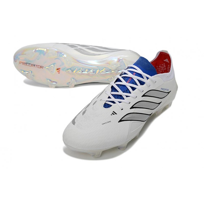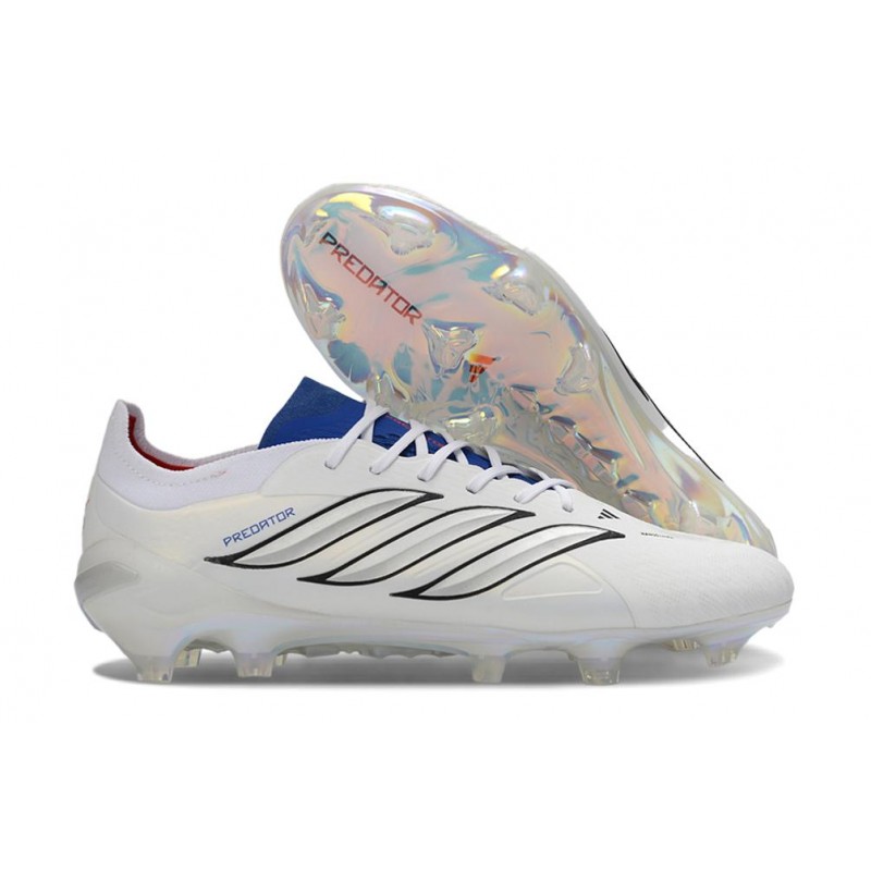 Ailettes en caoutchouc stratégiquement placées dans la zone de frappe pour une meilleure adhérence et précision. Panneau en tissu adidas Predator 26 PRIMEKNIT autour de la cheville. Technologie POWERSPINE pour assurer la stabilité au niveau du médio-pied.