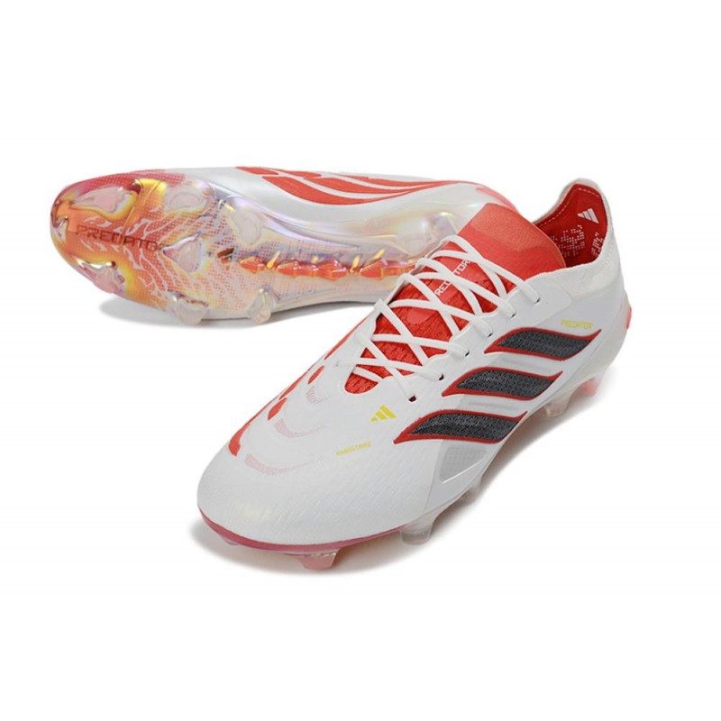 Ailettes en caoutchouc stratégiquement placées dans la zone de frappe pour une meilleure adhérence et précision. Panneau en tissu adidas Predator 26 PRIMEKNIT autour de la cheville. Technologie POWERSPINE pour assurer la stabilité au niveau du médio-pied.